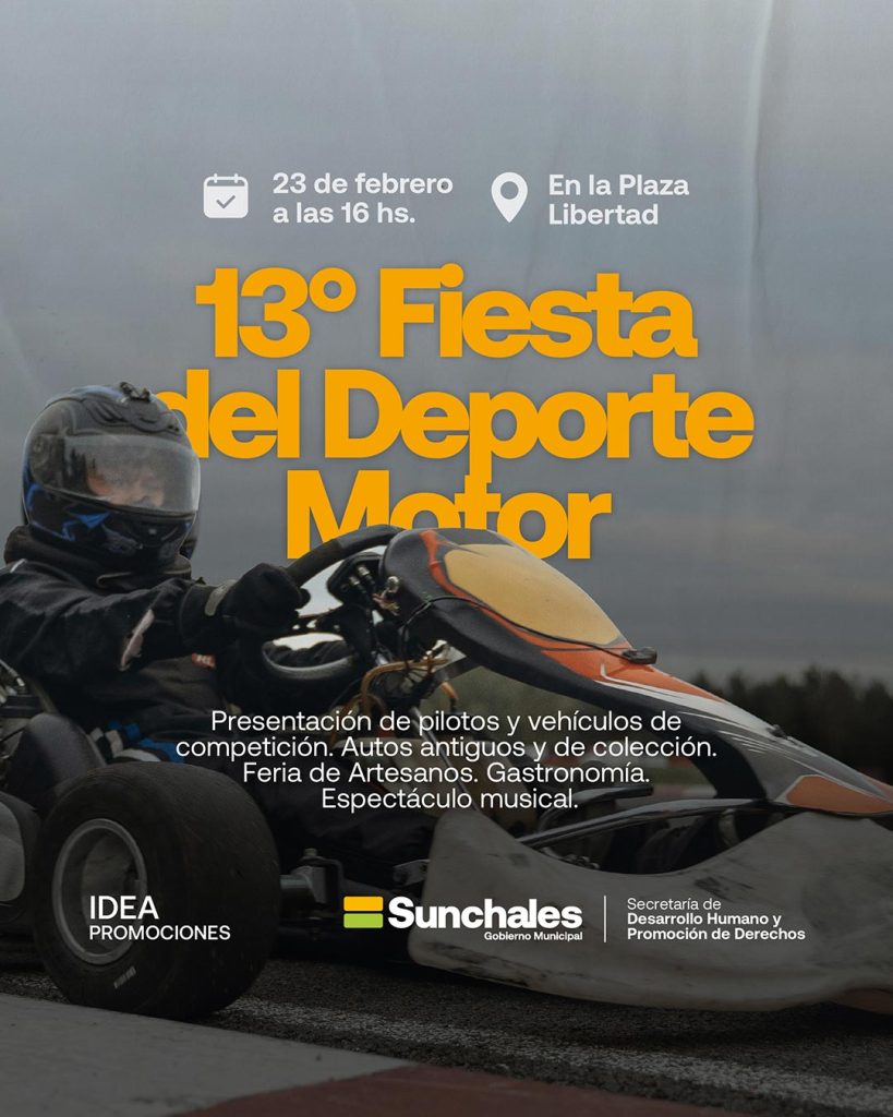 ¡Los esperamos para compartir la 13° Fiesta del Deporte Motor que es organizada por IDEA PROMOCIONES y cuenta con el apoyo de la MUNICIPALIDAD DE SUNCHALES!