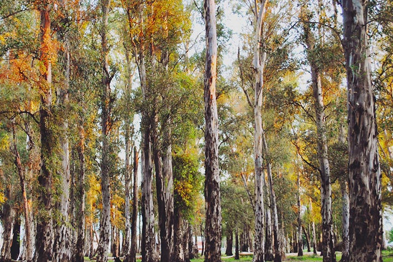 Espacio verde con conjunto de eucaliptos ubicado en Barrio Moreno, sobre calle J.J. Paso del 100 al 200, sector oeste del Predio del Ferrocarril.