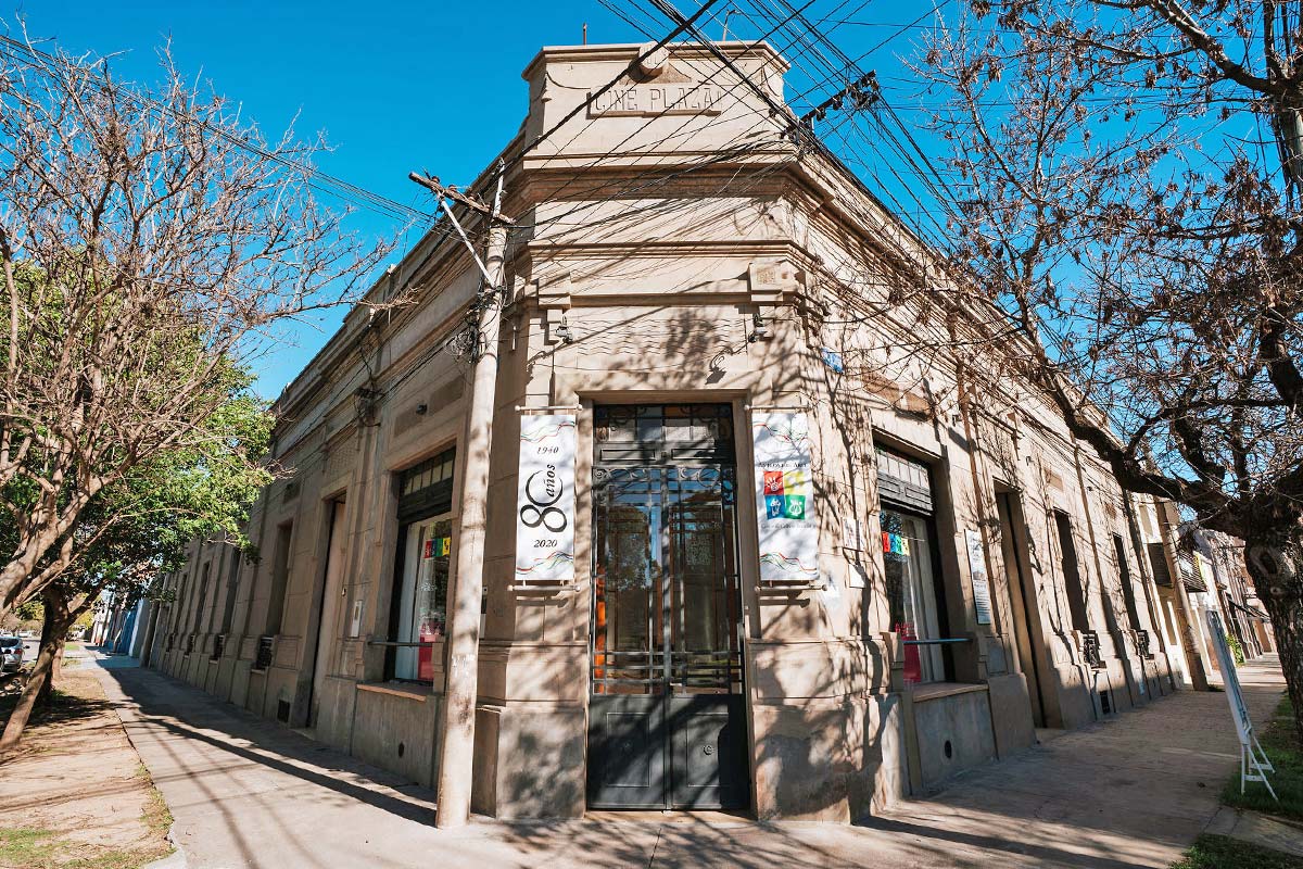 - Este edificio fue terminado de construir en el año 1928 y en su fachada se puede observar el título de «Cine Plaza» ya que, originariamente fue uno de los dos cines que existían en Sunchales en la década de 1930.