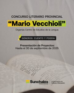 El Centro de Estudios de la Lengua de Sunchales (Comisión Cultural Municipal) organiza e invita a participar del Concurso Literario Provincial «Mario Vecchioli» en géneros CUENTO Y POESÍA.