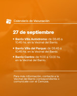 La Municipalidad de Sunchales informa que el próximo sábado 27 de septiembre se llevará a cabo la última jornada de vacunación antirrábica para felinos y caninos, machos y hembras, a partir de los 6 meses en barrios Villa Autódromo, Villa del Parque y Centro.