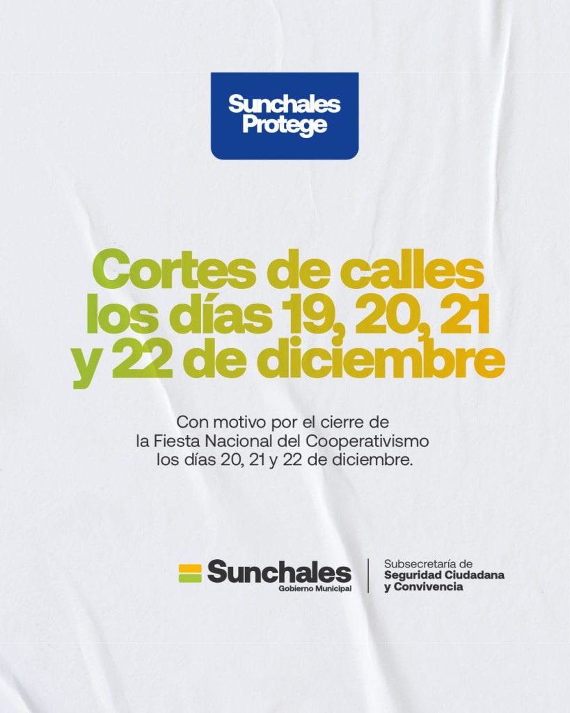 Inicio / Noticias / Cortes de calles por el cierre de la Fiesta Nacional del Cooperativismo 19/12/202405/06/2025 Desde este Jueves 19 al Domingo 22 de Diciembre, se realizaran cortes de calles por el cierre de la Fiesta Nacional del Cooperativismo. ¡Los esperamos a todos para disfrutar!
