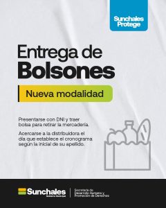 La Municipalidad de Sunchales, a través de la Subsecretaría de Promoción de Derechos, informa a los interesados que se implementará una nueva modalidad de entrega de bolsones alimentarios a partir de este mes.