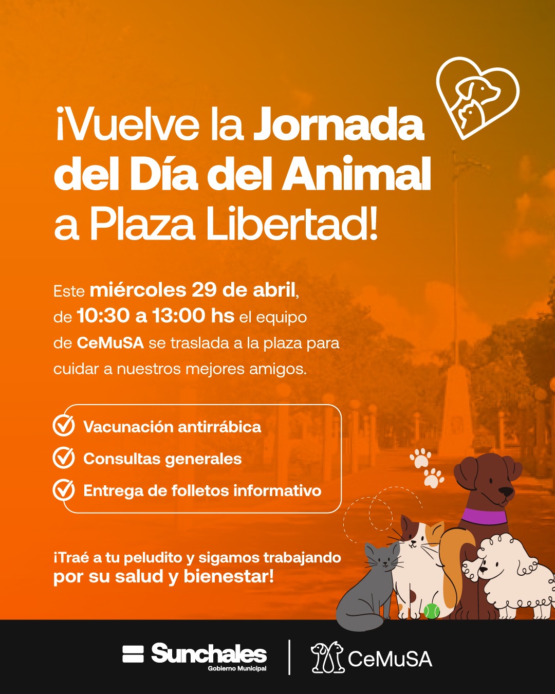 Este miercoles acercate a la Plaza Libertad con tu peludito, y festejemos juntos el Día del Animal. El equipo de CeMuSa se traslada a la plaza para cuidar a nuestros...