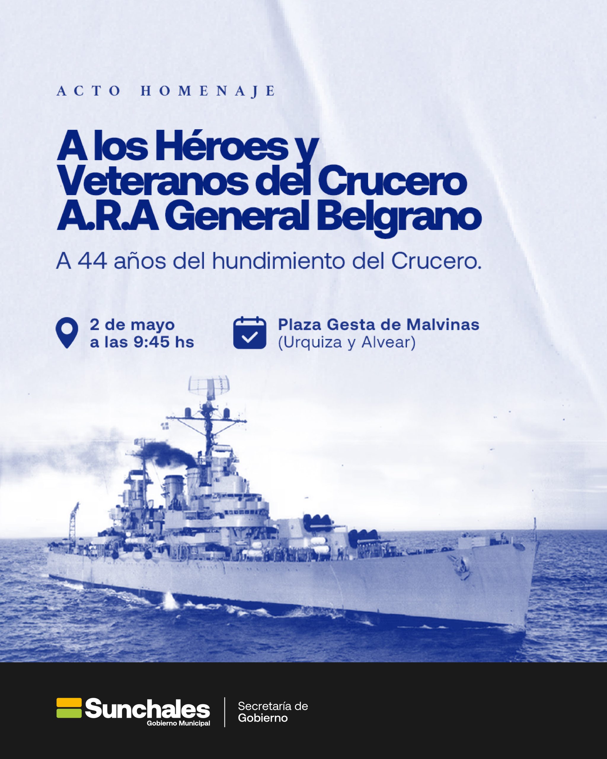 Los invitamos el sabado 2 de mayo al Acto "Homenaje a los Héroes y Veteranos del Crucero A.R.A General Belgrano". ¡Los esperamos!