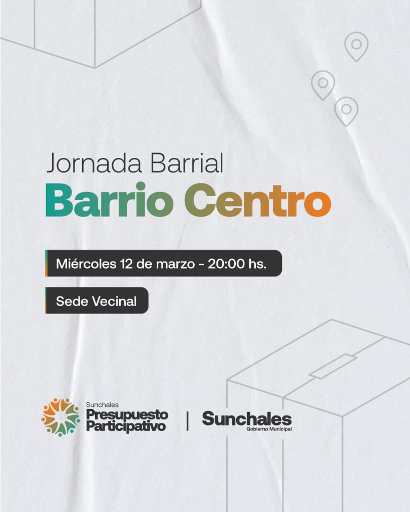 En la presente jornada tendrá continuidad la Jornada Participativa para Barrio CENTRO en la sede Vecinal a partir de la hora 20:00.