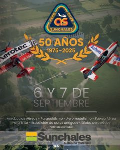 Los días sábado 6 y domingo 7 de septiembre, el Aeroclub Sunchales celebra su 50° Aniversario con un espectáculo único para toda la región.