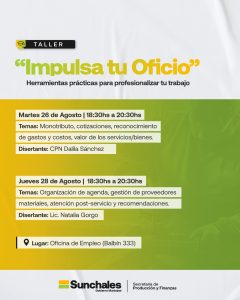 La Municipalidad de Sunchales, a través de la Oficina de Empleo y la Casa del Emprendedor, invita a participar de esta propuesta de formación gratuita, destinada a todas las personas que desarrollen oficios —bienes, servicios personales o trabajos a domicilio— y también a quienes deseen mejorar, organizar y dar mayor valor a su labor.